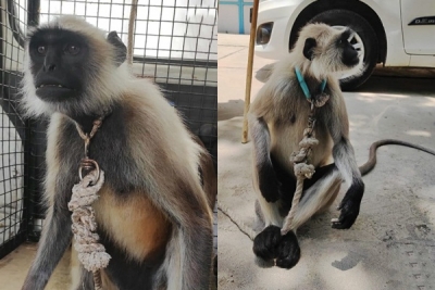 बंदरों द्वारा छत से भगाए जाने के बाद एक बुजुर्ग महिला की मौत के बाद कॉलोनी के निवासियों ने लंगूर के कटआउट लगाने का फैसला किया।