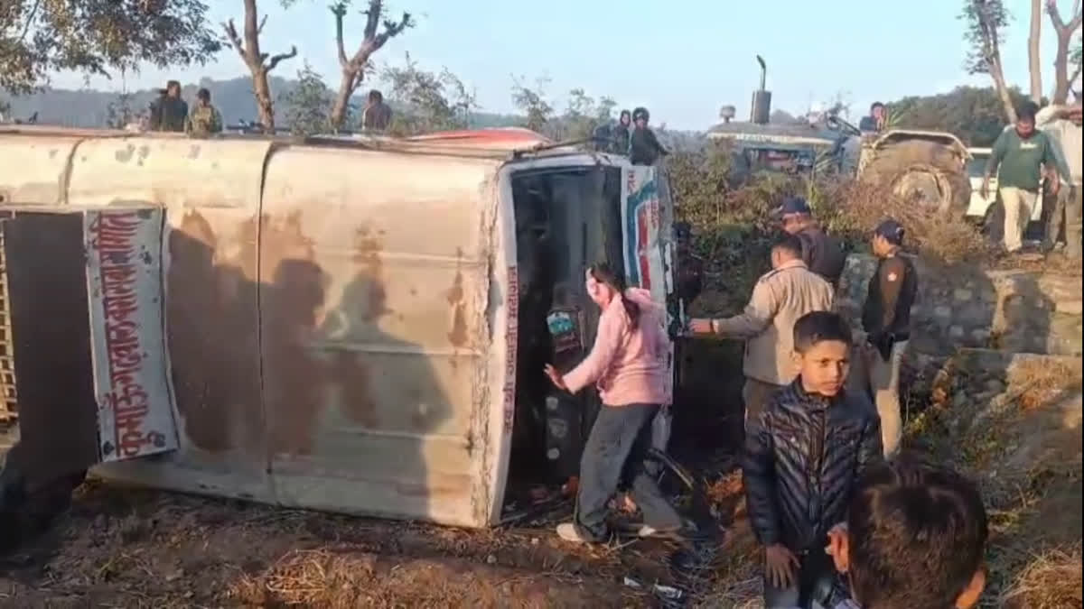 नैनीताल में रामनगर-हल्द्वानी रोड पर यात्रियों से भरी बस खेत में पलटी (VIDEO-ETV Bharat)